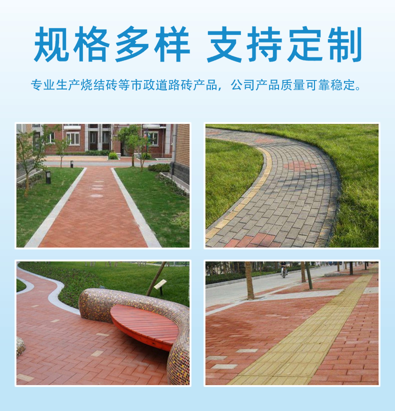 青島利盟新型建材有限公司是市政道路磚企業(yè),在青島開發(fā)區(qū)有混凝土磚合作工廠,專業(yè)生產(chǎn)高強度全聯(lián)鎖S型連鎖塊、透水磚、荷蘭磚、草坪磚、廣場磚等市政道路磚產(chǎn)品;在濱州有燒結(jié)磚合作工廠,專業(yè)生產(chǎn)燒結(jié)磚等市政道路磚產(chǎn)品;公司產(chǎn)品質(zhì)量可靠穩(wěn)定,在青島市政工程中,具有一定的知名度。公司一直秉承“以質(zhì)量求生存、以信譽求發(fā)展”的經(jīng)營理念,誠信經(jīng)營,開拓創(chuàng)新,企業(yè)不斷發(fā)展壯大,努力為廣大新老客戶提供優(yōu)質(zhì)產(chǎn)品和服務(wù),產(chǎn)品在青島市政工程中得到廣泛運用,得到相關(guān)建設(shè)單位和市政單位的認(rèn)可,深受廣大客戶的喜愛和好評。我公司將繼續(xù)以“質(zhì)量為本,誠信經(jīng)營,合作共贏”為宗旨,一如既往為廣大新老客戶提供質(zhì)量可靠的產(chǎn)品、完善的售后服務(wù),歡迎客戶朋友來廠參觀洽談,我們將真誠讓用戶滿意,互利互惠,攜手共進(jìn)!